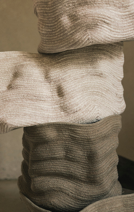 Discover our handcrafted textile decor for your home. From washable rugs, poufs and cushions, to baskets.
