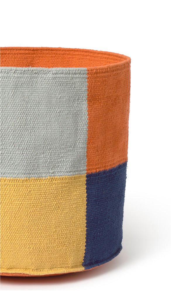 This handwoven kilim basket is perfect for keeping things tidy with style. Inspired by Bauhaus, it combines timeless design, texture, and playful patterns. Ideal for kids’ toys, cozy corners, or as a stylish accent in the living room, each basket is unique and full of character.