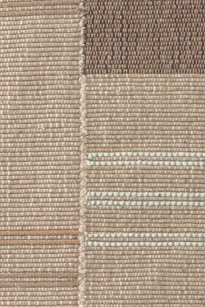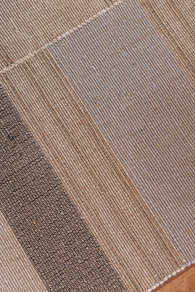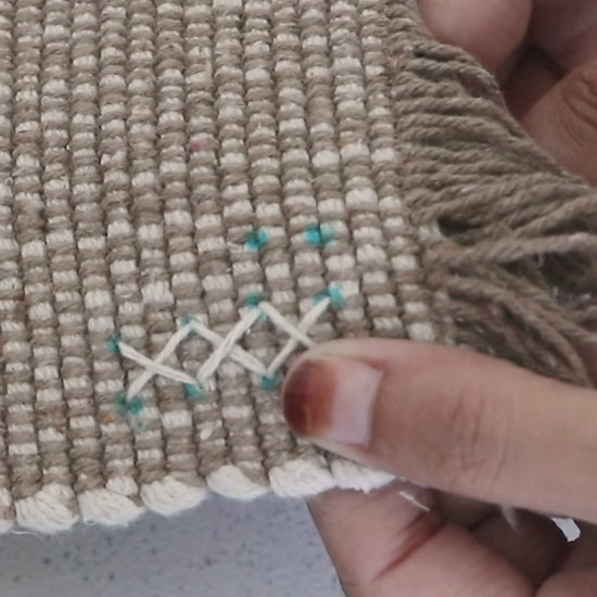 Inspired by Lorena’s journey to Mexico, this handloomed rug captures the essence of traditional weaving through a rich play of colors and textures. Light stitching is softened with a linen layer to blend naturally, while recycled-yarn fringes reveal subtle variations in tone and height. Finished with the signature “L” and a visible stitch line, each piece bears the unique character of true craftsmanship.