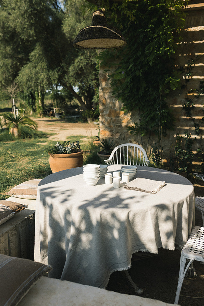 Handwoven tablecloth from the Casa Oaxaca collection in Greige tone, crafted by artisans working on traditional looms. A timeless piece that celebrates craftsmanship and authenticity.