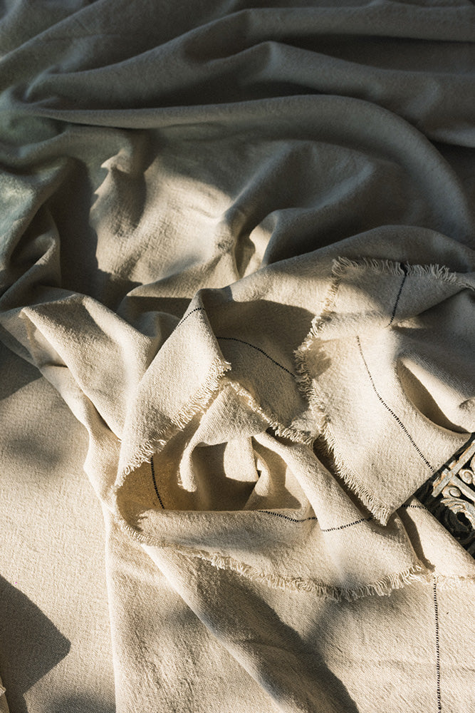 The art of handloom is a slow creation process involving two artisans and a handloom, where each thread must be placed one by one without the use of electricity and then meticulously woven into the fabric or rug. These artisans are not just artisans; they are custodians of a centuriesold tradition that has been passed down from generation to generation. The handloom technique can take days, depending on the size of the piece. You hold a unique piece in your hands.