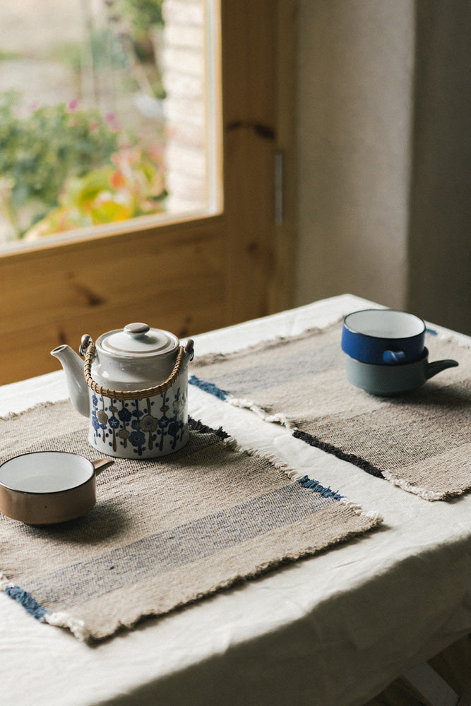 Add a touch of color to your table with our set of four handcrafted placemats, made from RugCycled® fibres and natural cotton. Each placemat combines Patriot Blue, Coffee Bean, and Natural tones in a balanced, artisanal design.